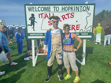 It was about this time when the first of two Boston Globe reporters approached me for brief interviews, asking the expected sorts of questions -- who was I dressed up as, why did I do this, how difficult was it to run in the costume, did I really run in it the whole time, what was I most looking forward to eating, etc.